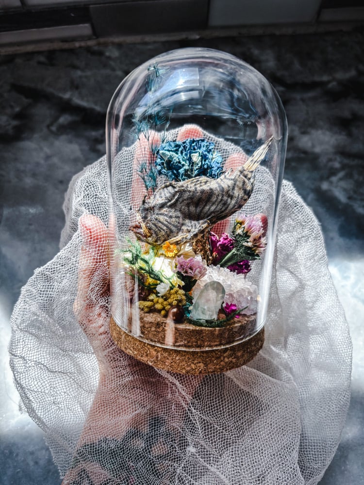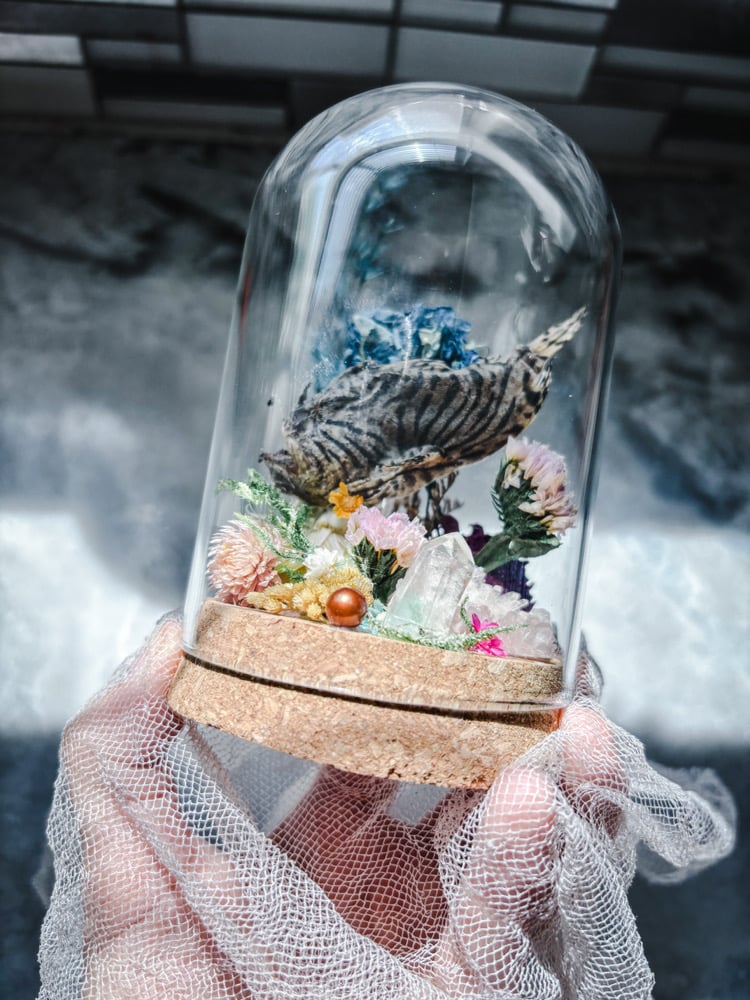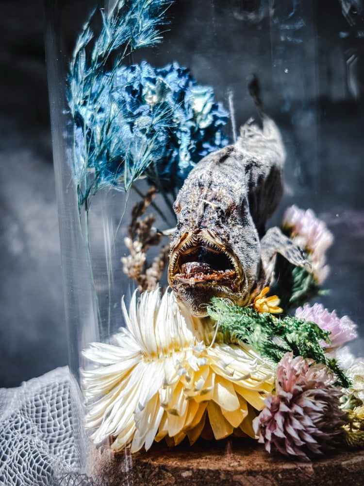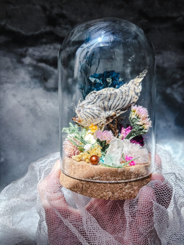 Extremely rare xl angler fish from japan. With chocolate pearl and chlorite Crystal, rose quartz clusters.